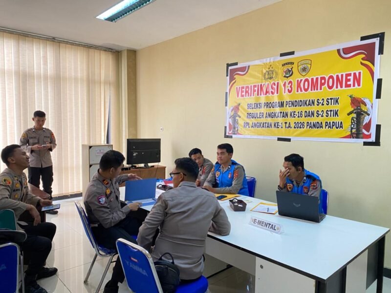 Papua – Polda Papua melalui Biro Sumber Daya Manusia (SDM) melaksanakan kegiatan verifikasi 13 komponen dalam rangka seleksi Pendidikan S-2 Sekolah Tinggi Ilmu Kepolisian (STIK) Reguler Angkatan ke-16 dan S-2 STIK Rekognisi Pembelajaran Lampau (RPL) Angkatan ke-1 Tahun Anggaran 2026. Kegiatan tersebut berlangsung di Ruangan Pelayanan Biro SDM Polda Papua, Kamis (05/03/2026).