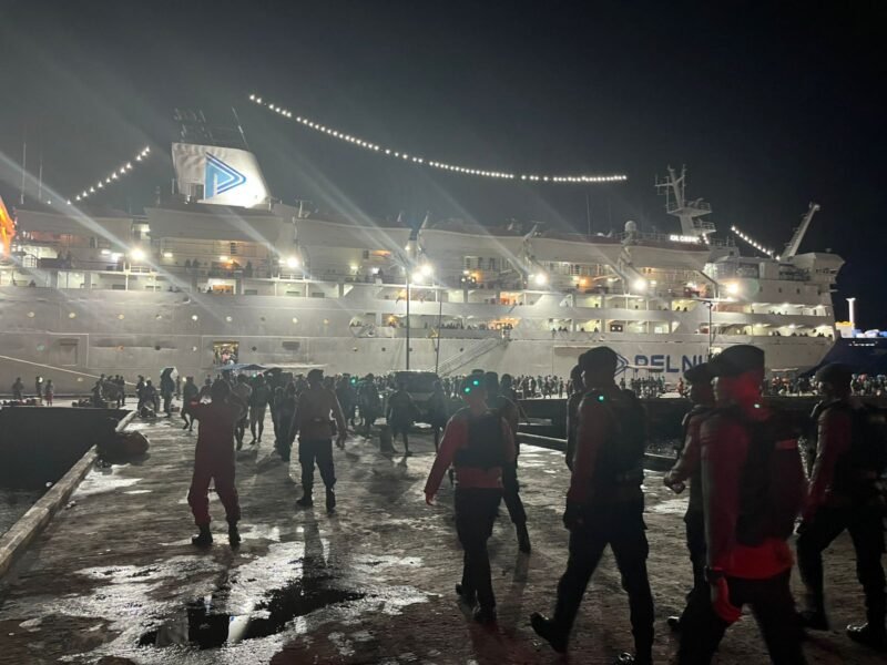 Manokwari – Personel yang tergabung dalam Operasi Ketupat Mansinam 2026 Polda Papua Barat melaksanakan pengamanan kedatangan kapal penumpang di Pelabuhan Manokwari dalam rangka memastikan kelancaran dan keamanan arus mudik Lebaran tahun 2026.